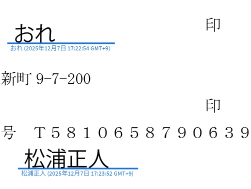 PDF上で電子署名したもの。受信者は適当に「おれ」とか入れてますが。署名した日時も記載されていますね。